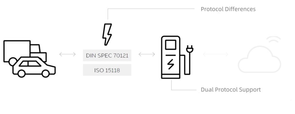 Traditionally, the communication between electric vehicles (EVs) and EV charger is governed by two standards: DIN 70121 and ISO 15118. DIN 70121 is more prevalent in this field because it was released earlier than the current version of ISO 15118-2. However, ISO 15118-2 boasts more comprehensive functions, including “Plug and Charge” (plug-and-play charging), encryption, and digital certificates.